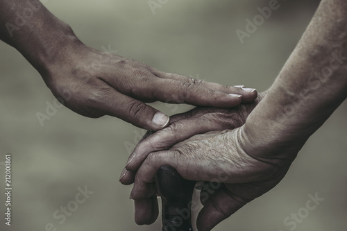 © beeboys, Fototapeta premium 杖を持つ女性に手を添える女性