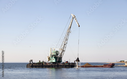 Fototapeta premium Плавучий кран загружает баржу