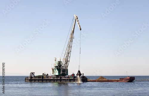 Fototapeta premium Плавучий кран загружает баржу