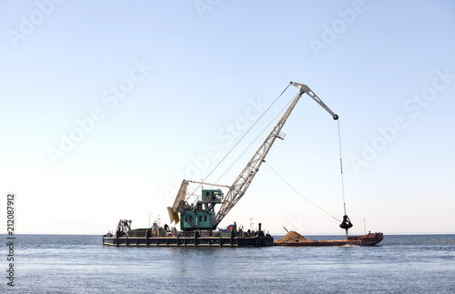 Fototapeta premium Плавучий кран загружает баржу