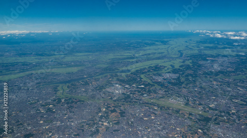 Obraz premium 千葉県上空から茨城県の利根川方面の空撮写真