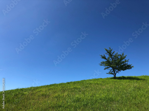 © Tike, Obraz premium 丘の上に立つ木と夏の青空