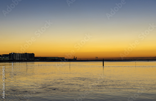 Obraz premium 朝焼けの多摩川河口