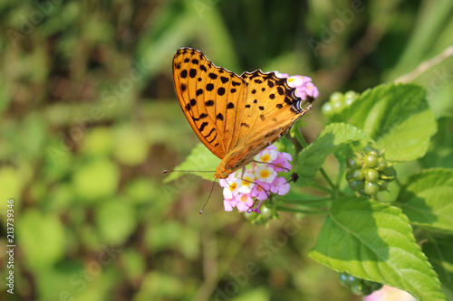 © Teresa Design Room, Fototapeta premium ランタナの花の蜜を吸うツマグロヒョウモンのオス