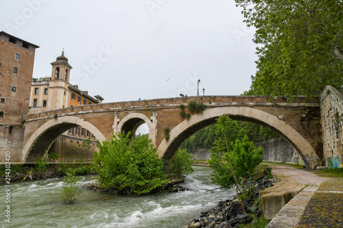 Fototapeta premium テヴェレ川に架かるファブリキウス橋(ローマ、イタリア)