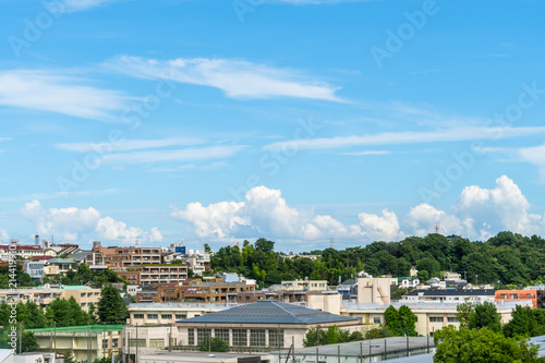 Obraz premium 東京郊外の風景 青空と雲と住宅地3