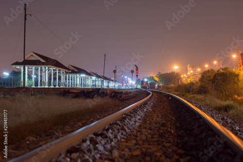 © MIKITO, Obraz premium 夜・鉄道・電車・レール・線路