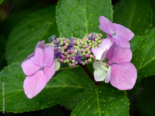 Obraz premium 雨に濡れたガクアジサイ