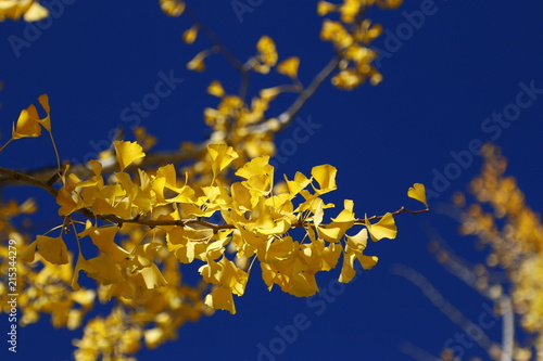 Obraz premium イチョウの木 イチョウの葉 秋の風景 紅葉
