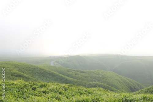 Obraz premium 朝霧に包まれる早朝の阿蘇