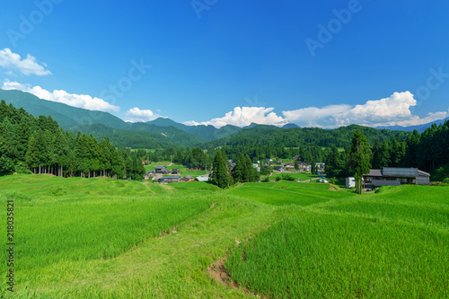 © ikeda_a, Fototapeta premium 【新潟県三条市北五百川】北五百川の棚田は粟ヶ岳の裾野に位置し、日本の棚田100選に選ばれている。
