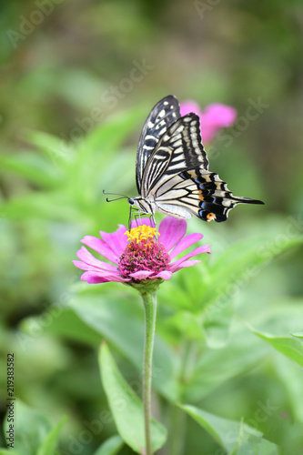 Obraz premium ジニアの花とあげはちょう