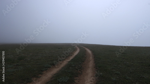 © Владимир Ясюкевич, Naklejka premium Дорога. Степь. Туман.