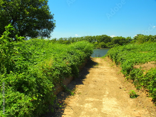 Obraz premium 江戸川に続く道風景