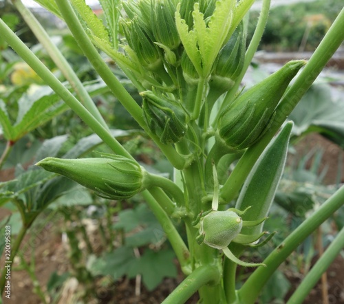 Obraz premium 畑のオクラ