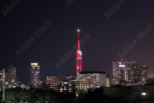 © fy2907fw, Fototapeta premium 福岡シーサイドももち夜景風景(レッド版)