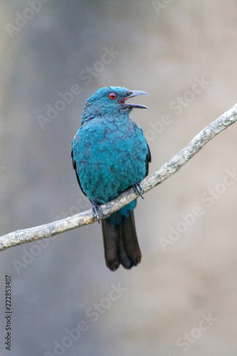 Obraz premium синяя птица с красными глазами сидит на ветке
