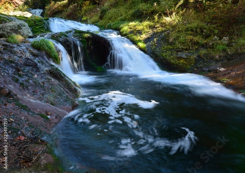 © askaflight, Fototapeta premium 山奥の滝のある川-おしどり隠しの滝