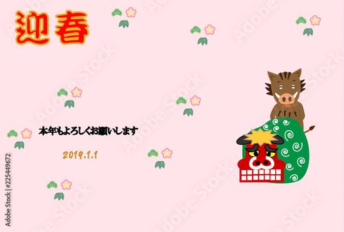 © shin28, Fototapeta premium 2019年の年賀状素材のテンプレート