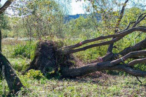 © photopic, Fototapeta premium 台風で根元から倒れた遊水地の木
