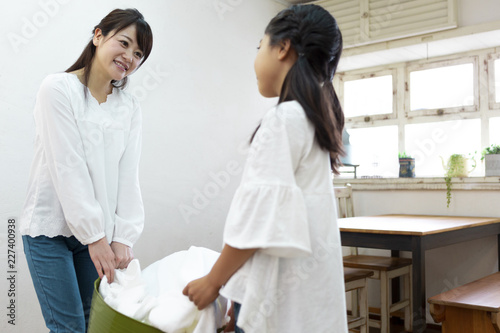 © milatas, Fototapeta premium 洗濯かごを持つ親子