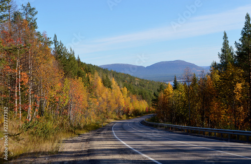© nikpul, Fototapeta premium осенний пейзаж с дорогой в лесу.