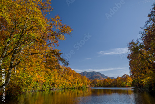 Fototapeta premium 紅葉の鎌池(長野県小谷村)