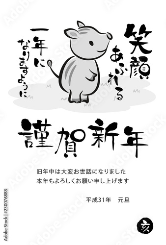 Obraz premium 2019年亥年 白黒のイノシシの年賀状テンプレート