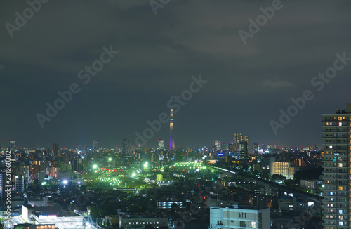 Obraz premium 東京夜景・東京スカイツリーと街並み