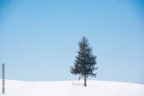 Fototapeta premium 丘の上の松の木と青空 美瑛町