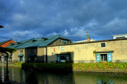 Obraz premium 晩秋の小樽運河の倉庫群の風景