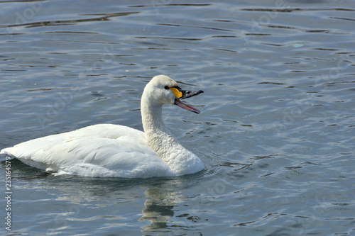 Obraz premium 口を開いたコハクチョウ