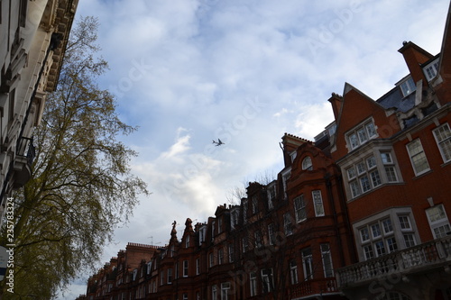 Obraz premium самолет пролетает над викторианскими домами в Лондоне
