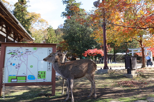 © narautsu, Fototapeta premium 奈良公園 紅葉と鹿