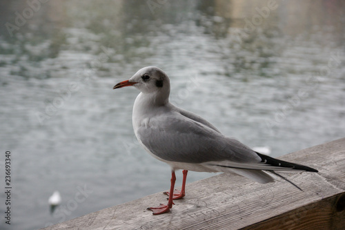 © 早川 義昭, Obraz premium 11月のスイス ルツェルン ロイス川で休む小鳥