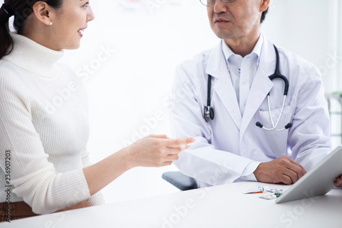 © Monet, Fototapeta premium 医師が処方する薬について質問をする女性患者