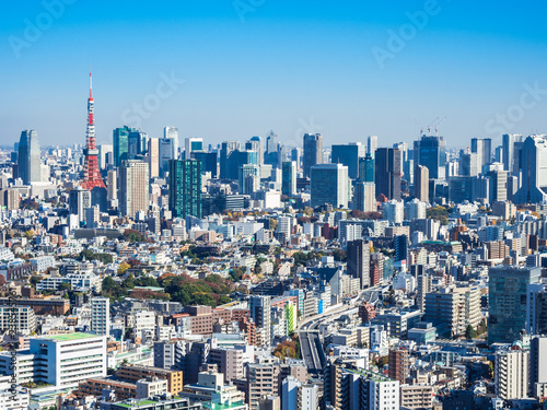 Naklejka premium 東京 青空と都市風景