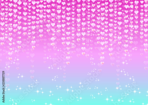 © photopic, Obraz premium ピンクとペパーミントブルーグラデーション背景に連なるハート