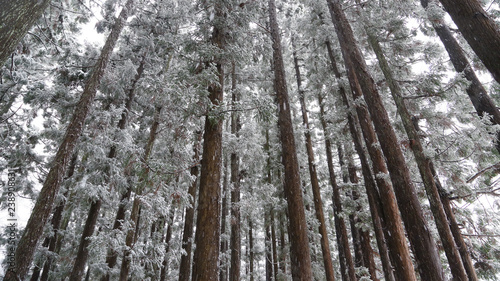 Obraz premium 雪が積もったスギの林