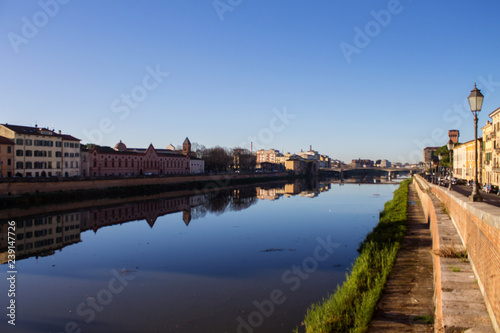© eevlada, Fototapeta premium вид на противоположный берег реки Арно, Италия, Пиза, декабрь 2018