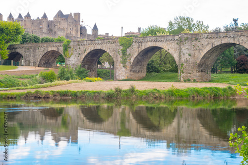 Fototapeta premium カルカソンヌに架かる橋の反射