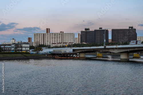 © onotorono, Fototapeta premium 品川区の都市風景 夕方の川