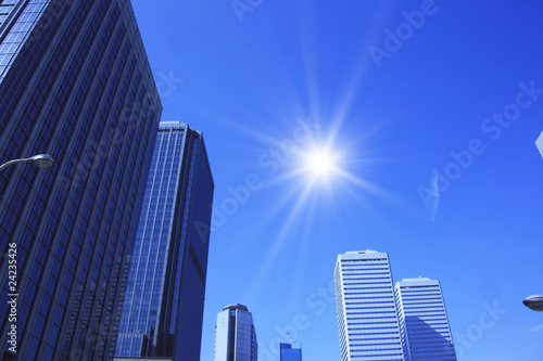 Fototapeta premium 高層ビルと太陽