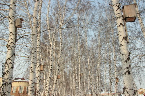 Obraz premium Берёзы со скворечниками
