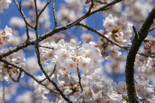 Obraz premium 太陽のスポットライトを浴びる桜の花