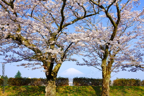 © photop5, Fototapeta premium 満開の桜と富士山、静岡県御殿場市東山湖にて