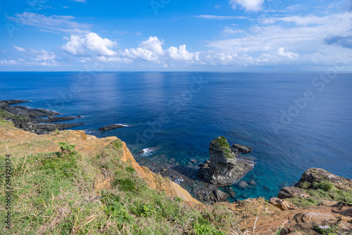 Obraz premium 日本最西端の島、与那国の立神岩(たちがみいわ)