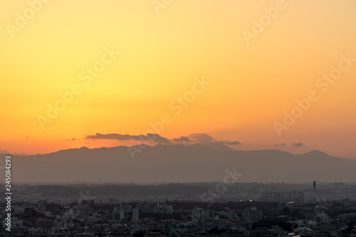 Fototapeta premium 富士山のシルエットと夕焼け空