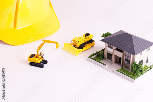 Obraz premium 住宅工事 イメージ ヘルメット家 工事現場