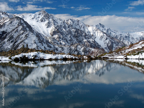 © mahalopuka, Fototapeta premium 水鏡のような高山の天然池【白馬 八方池】
